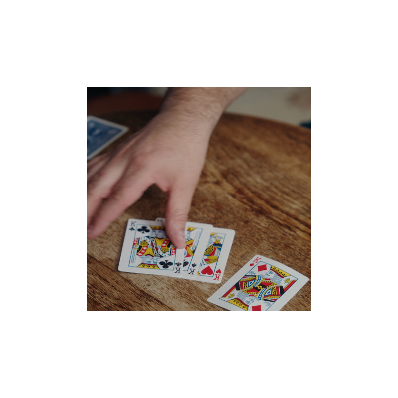 A magnificent transformation without any manipulation, revealing the four cards of the same suit before the spectator's eyes, in the Tally-Ho Circle Back version!